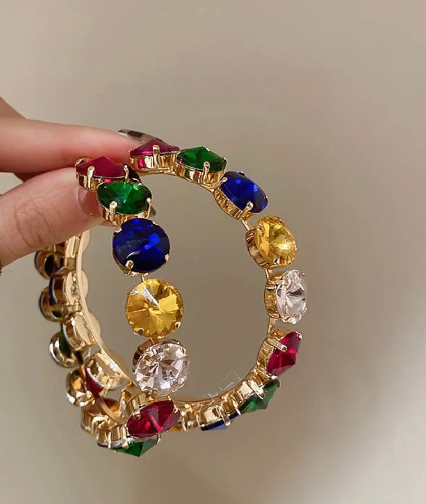 幾何学的/ラウンドクリスタルピアス/カラフルジュエリー