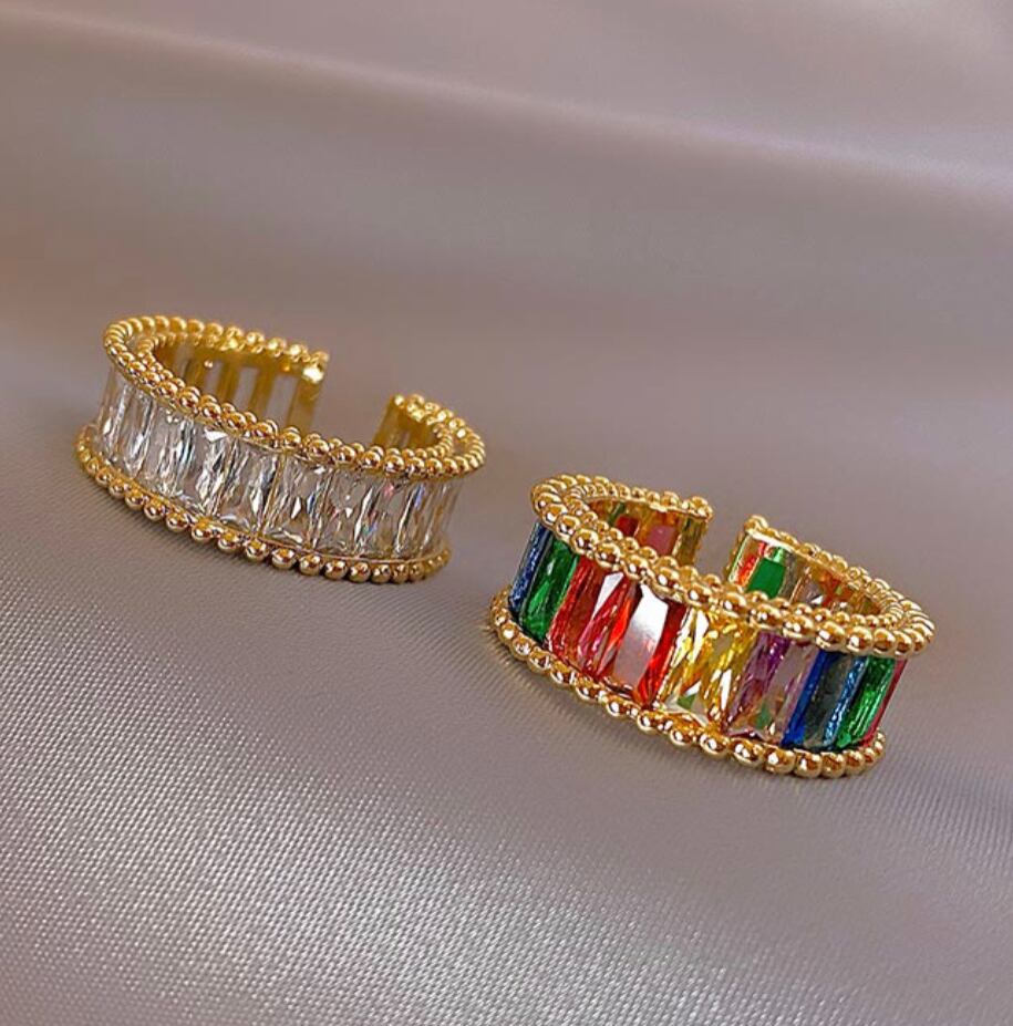 ゴールド/マルチカラージルコンリング/韓国ジュエリーファッション