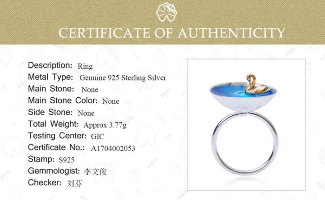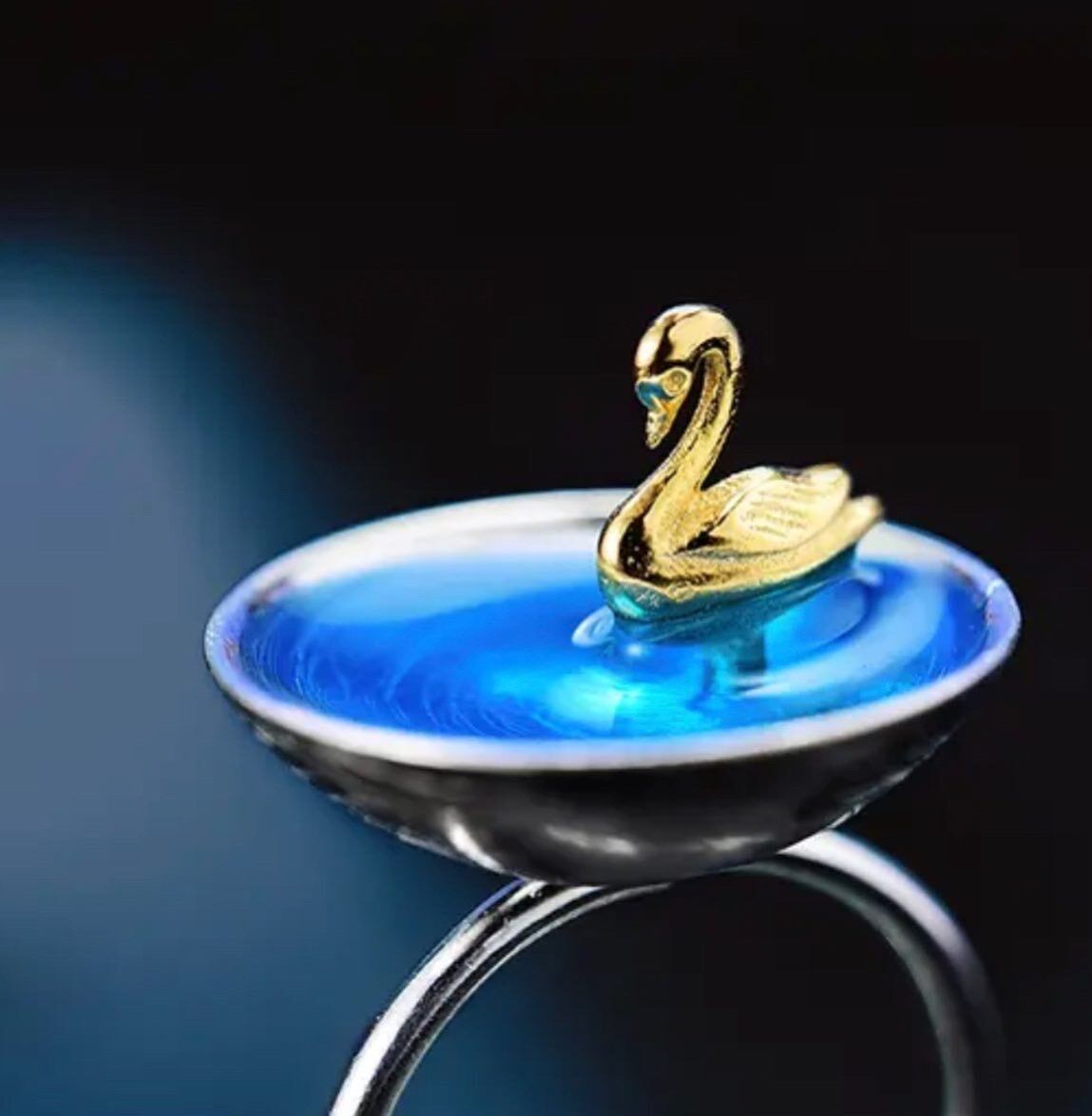 Lotus Fun/海に浮かぶスワン/ハンドメイドデザイナー/幻想的/調節可能リング