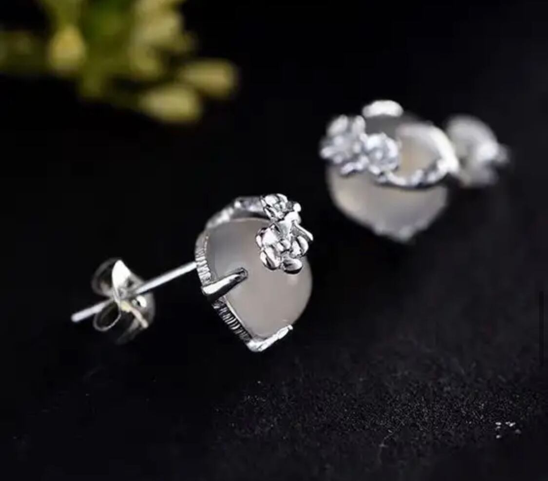 天然石カルセドニー/シルバー/フラワーモチーフピアス