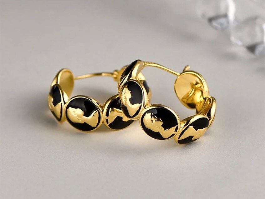 スターリングシルバーとゴールドのイヤリング,イヤリング,925スターリングシルバー,18k,エポキシ,シック
