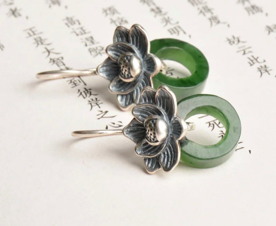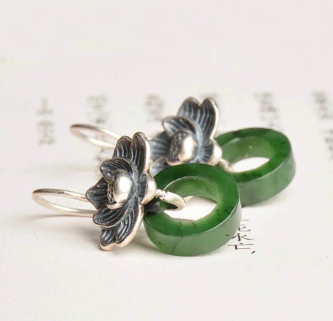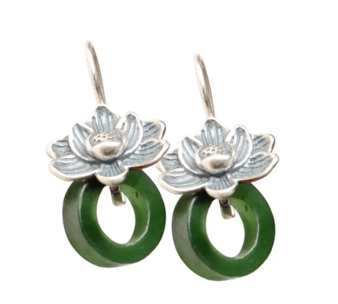 シルバープレーティング/天然石カルセドニー/蓮の葉/フックピアス