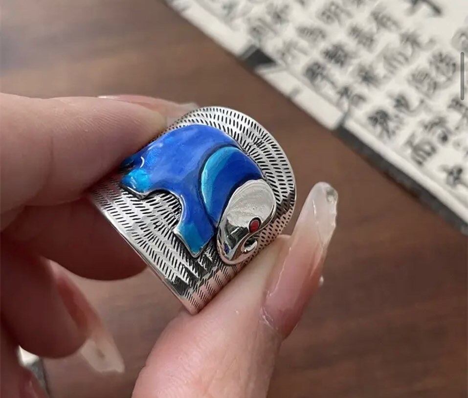 エナメルエレファント/スターリングシルバー925/調節可能リング