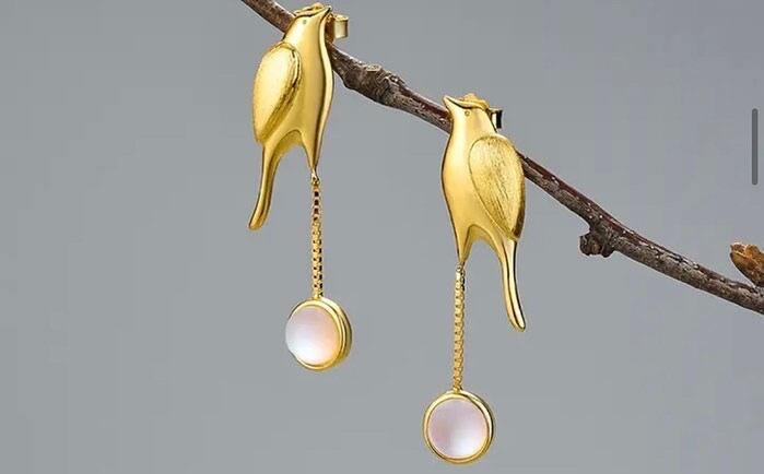 燕/ツバメとムーンストーンのピアス/フェイクストーン/スターリングシルバー925/ゴールドプレート/デザイナーハンドメイド