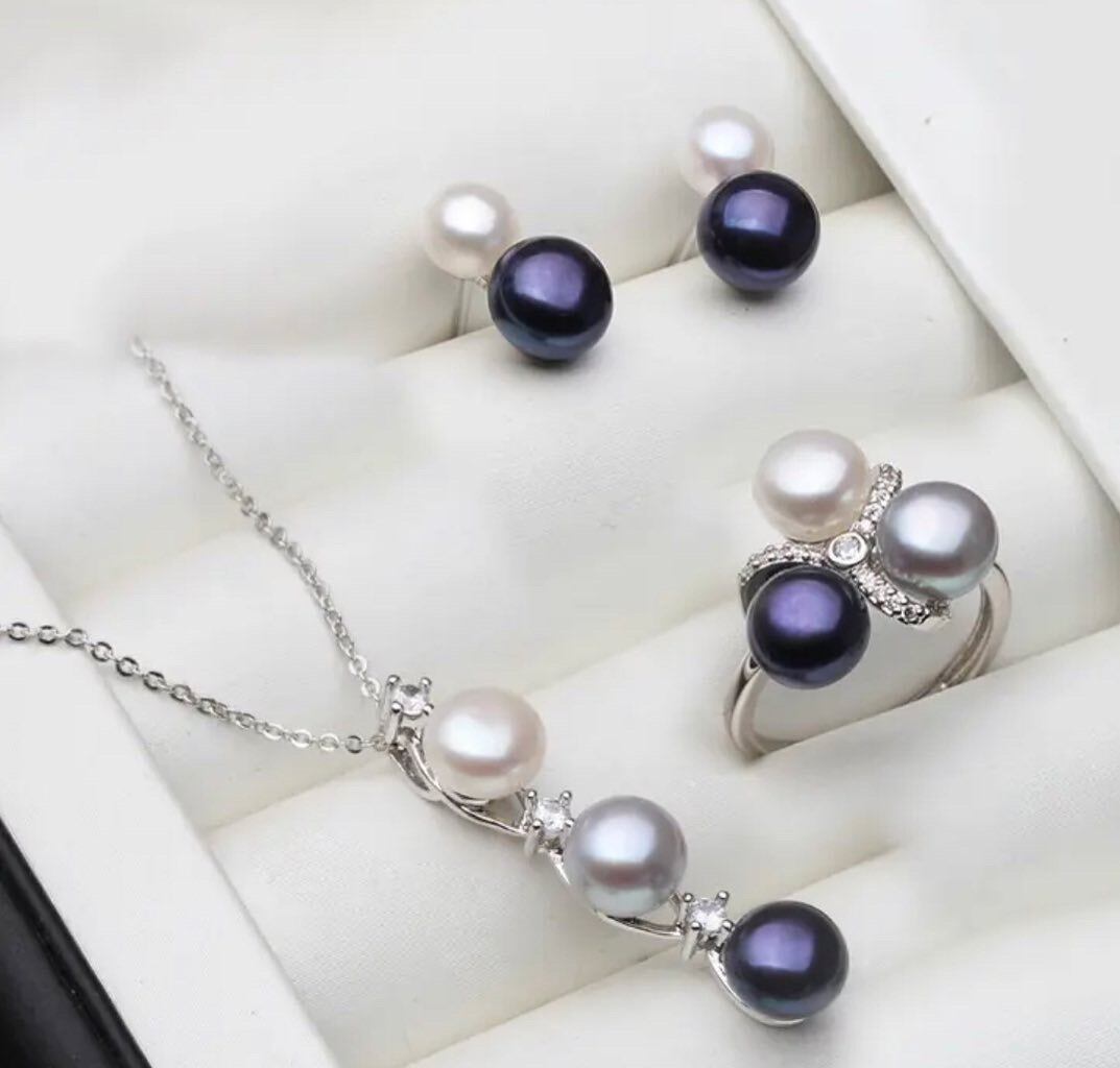スターリングシルバー925/天然淡水真珠ボタンパール型/3点セット
