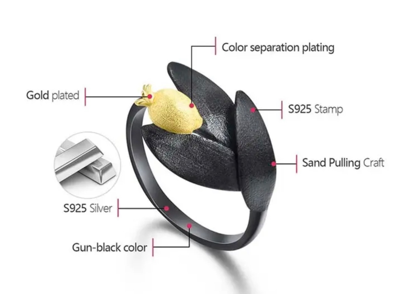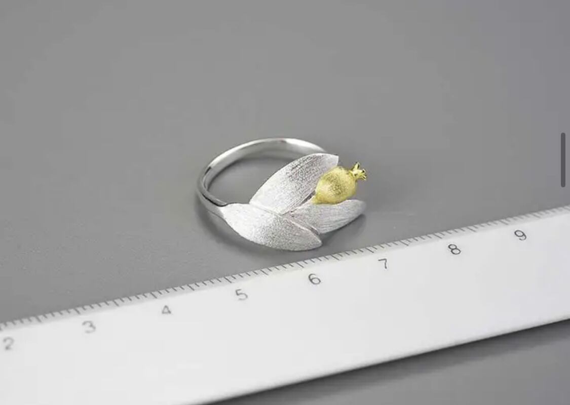 フルーツリーフ/スターリングシルバー925/ゴールドプレート/サイズ調節可能リング