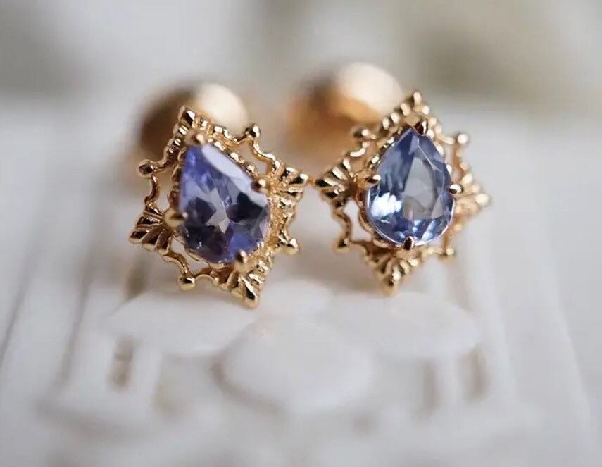 天然石タンザナイト/スターリングシルバー925/スタッドピアス