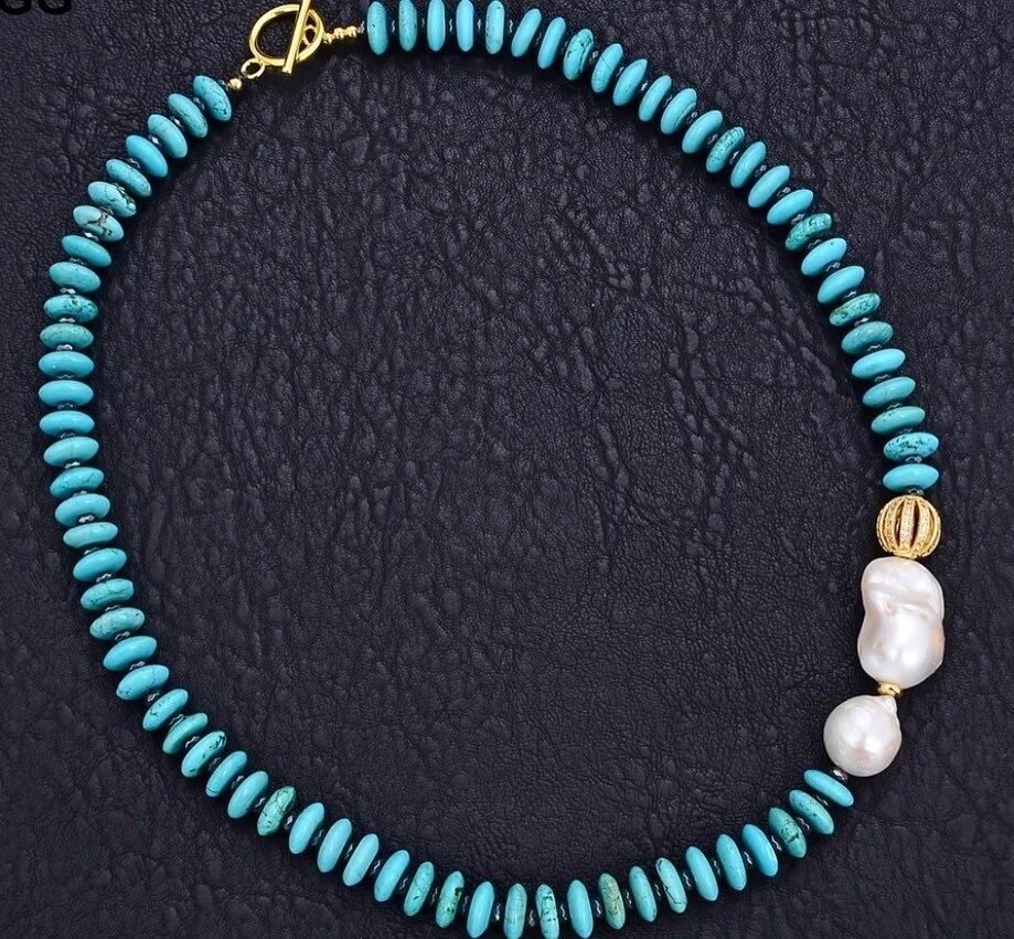 淡水養殖ケシパール/ディスクブルーターコイズ/ロンデルヘマタイト/ネックレス/チョーカー