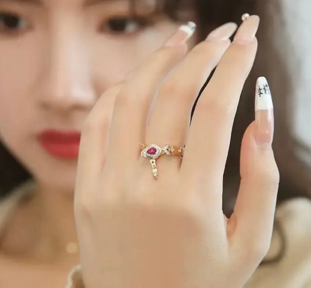 ステンレススチール/サイズ調節可能/スネークリング/クリスタル