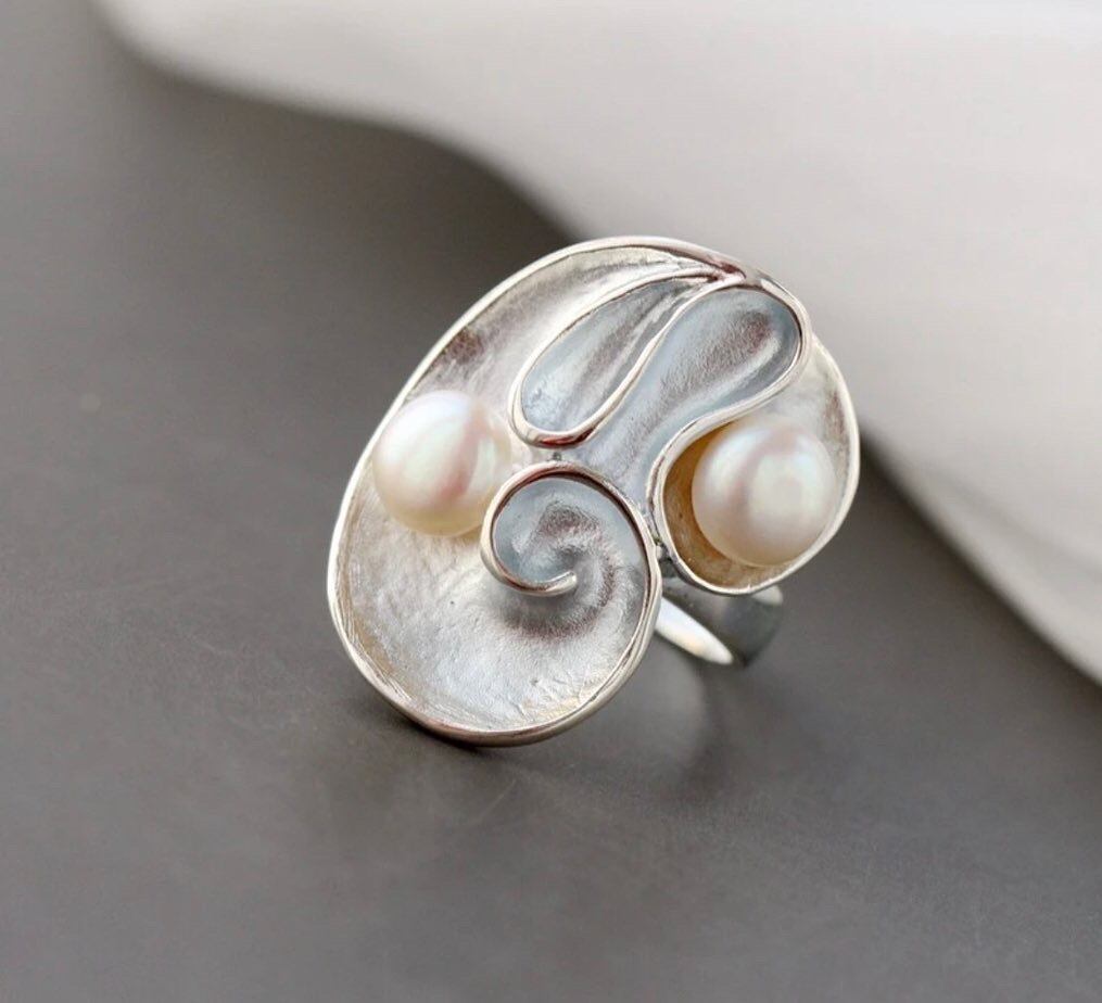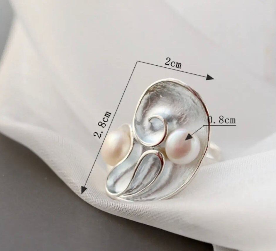 スターリングシルバー925 天然淡水真珠/サイズ調節可能/デザイナーハンドメイド