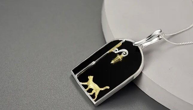 天然石ブラックアゲート/スターリングシルバー925/ゴールドプレート/チェーン付きペンダント/ネックレス