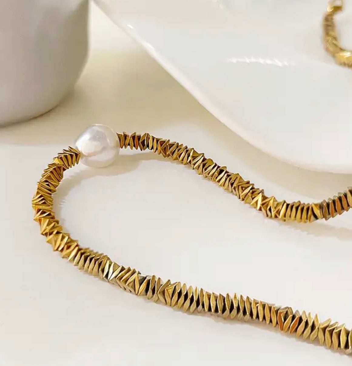 ステンレススチール/18kgp/パール/チョーカー/ネックレス