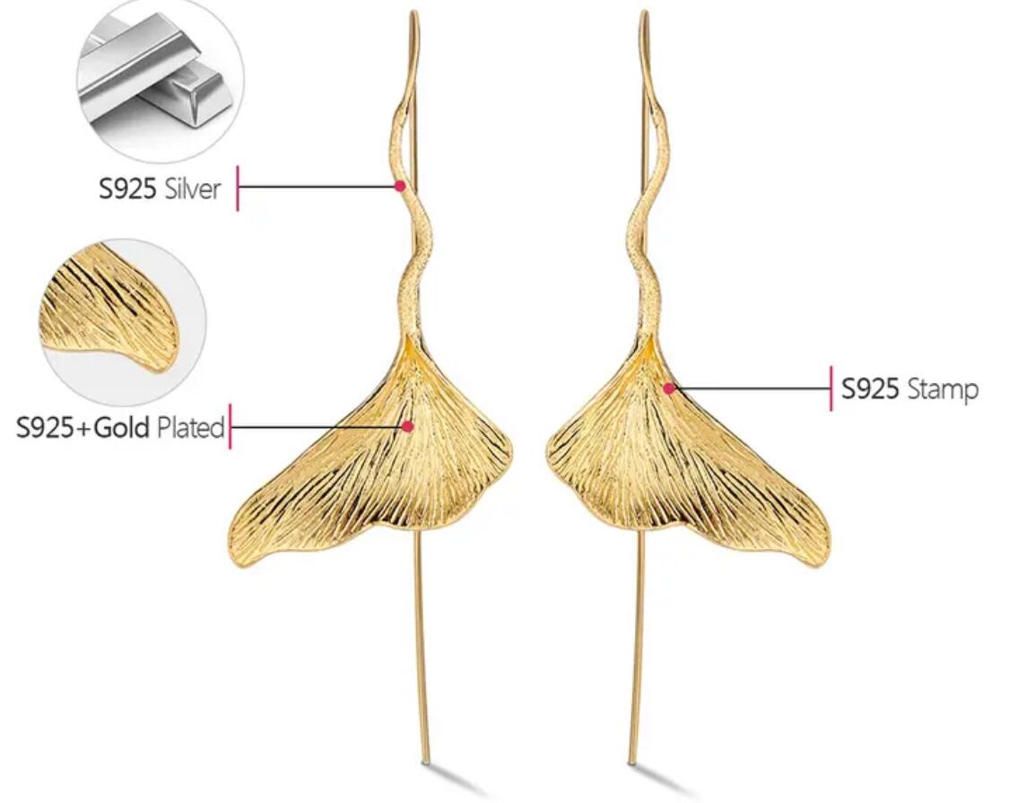 イチョウ/銀杏の葉/スターリングシルバー925/ゴールドプレート/ピアス