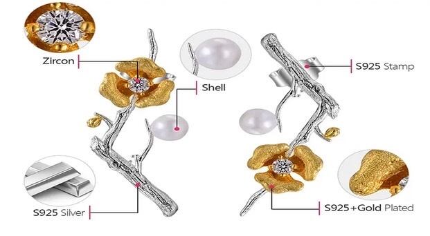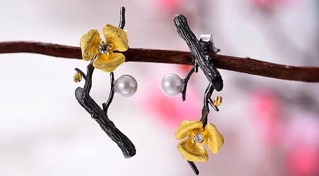 梅の花/スターリングシルバー925/ゴールドプレート/ピアス