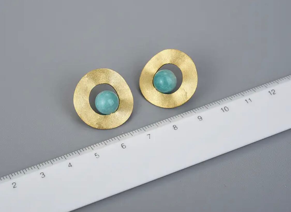 スターリングシルバー925/天然石/ピアス/サークル/海外デザイナーハンドメイド