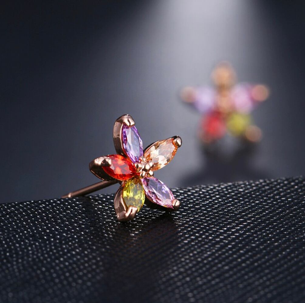 キュービックジルコニア/フラワー/クリスタル/ローズゴールドピアス