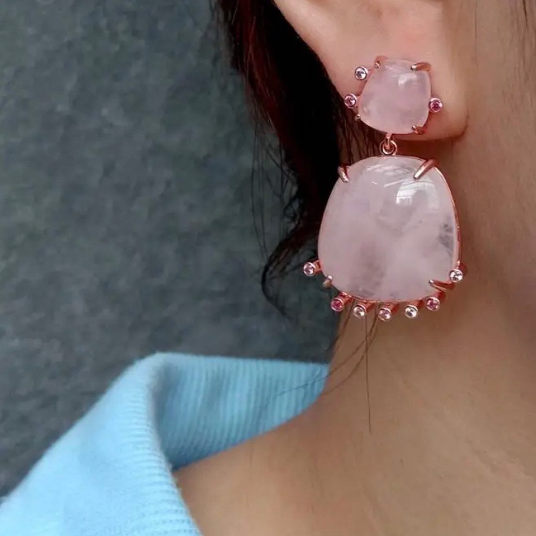 天然石ローズクウォーツ/金メッキスタッド/大ぶり/ピアス