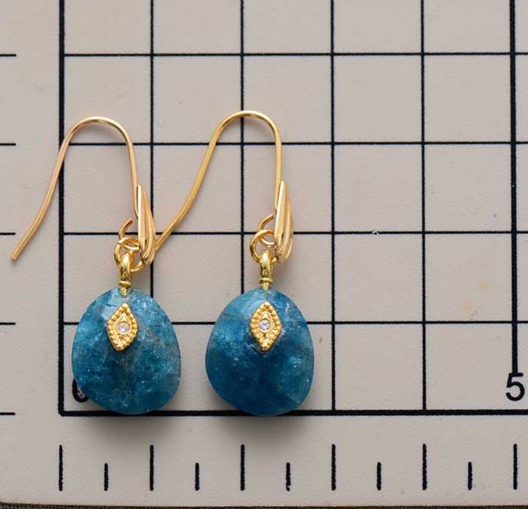天然石アパタイト/天然石ローズクウォーツ/メタルピアス/ドロップ/ゴールド