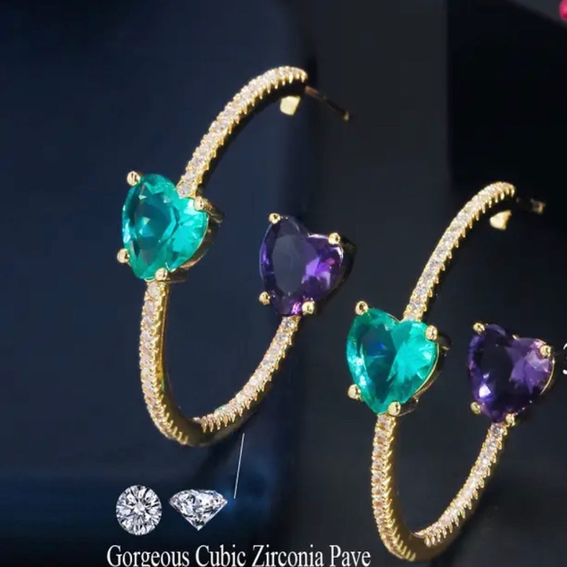 丸い紫色のキュービックジルコニアクリスタル/ボヘミアンジュエリー/ハート
