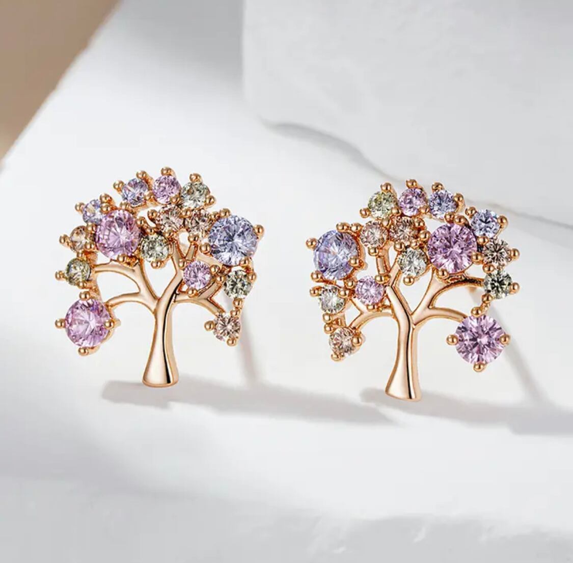 ローズゴールドプレート/ジルコニア/樹木/カラフル/ピアス
