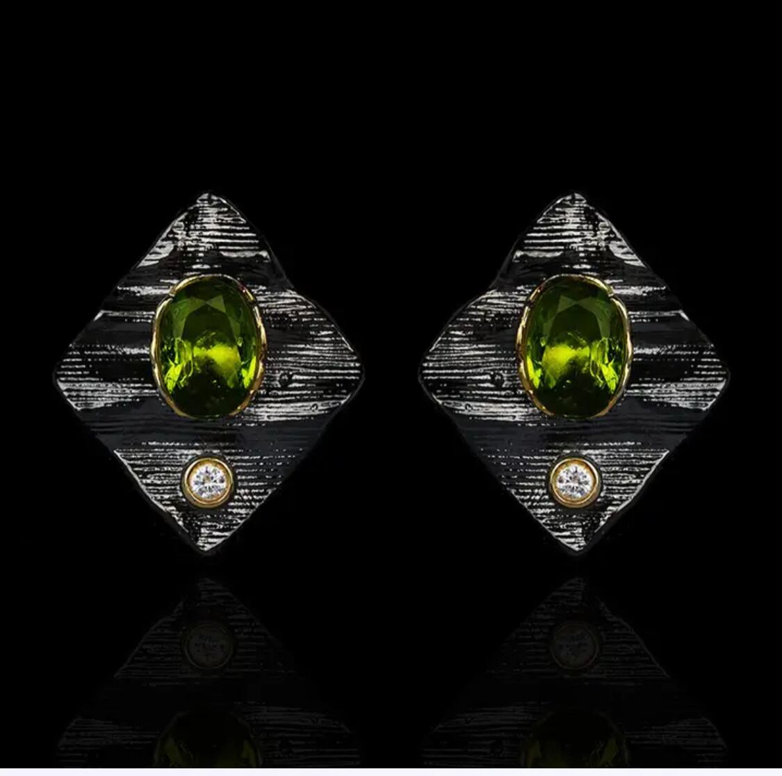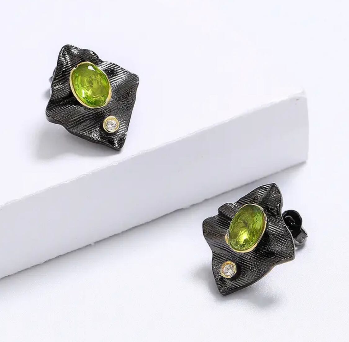 天然石キュービックジルコニア/グリーン/ブラック/シルバー/ピアス