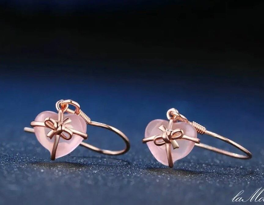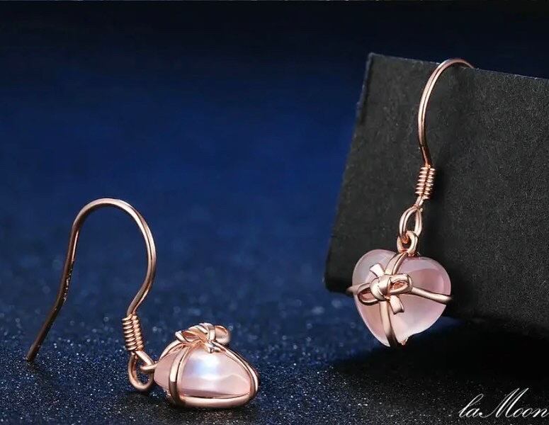 ピンククォーツ/100% スターリングシルバー/ドロップピアス/7x8mm/ナチュラルハート