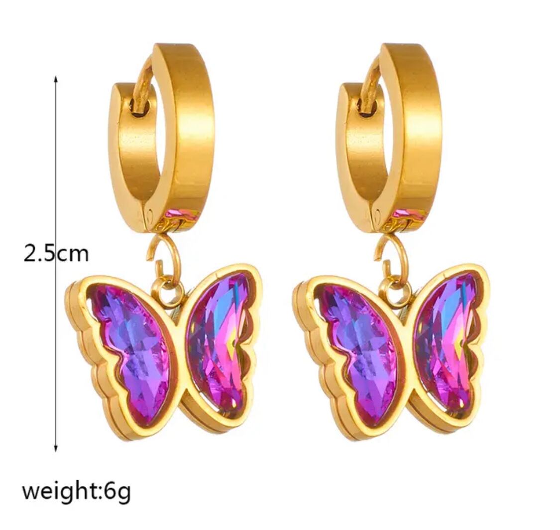 ステンレススチール/クリスタル/蝶々/星/バタフライ/スター/ピアス