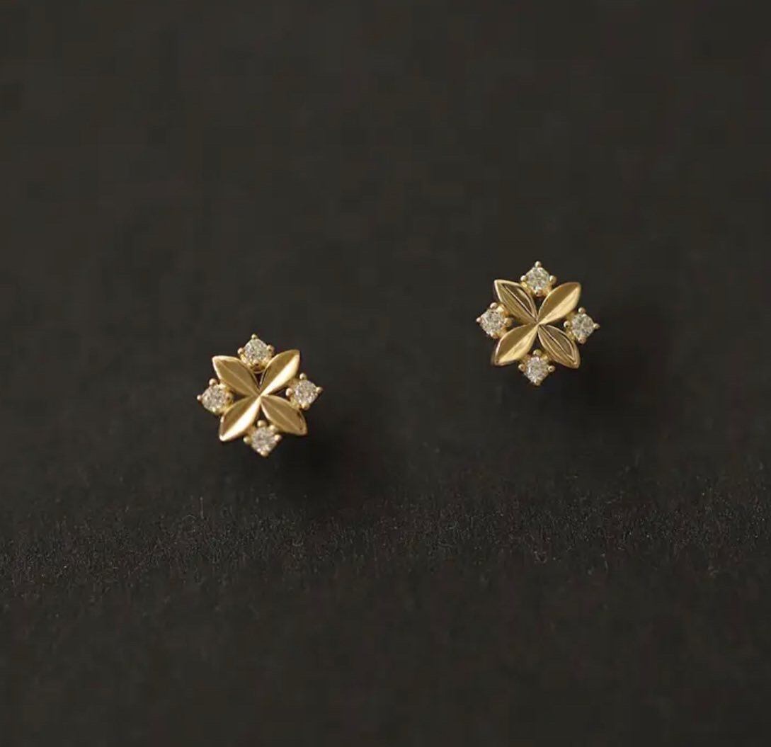 S925スターリングシルバー/メッキ14 18kゴールド/スタッドピアス/女性/菱形/ジルコニア/クロス