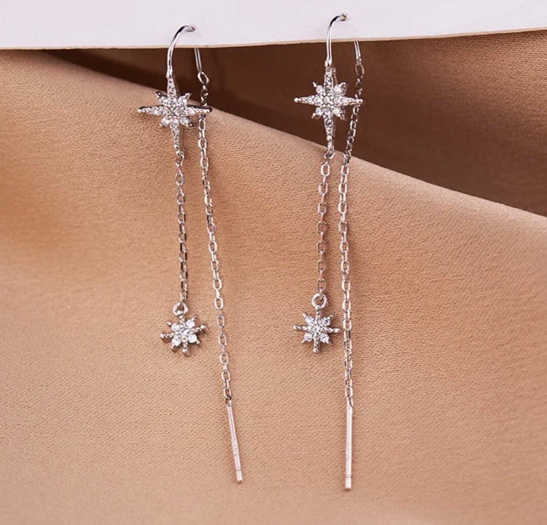 星がちりばめられたピアス/キュービックジルコニア/ロングピアス