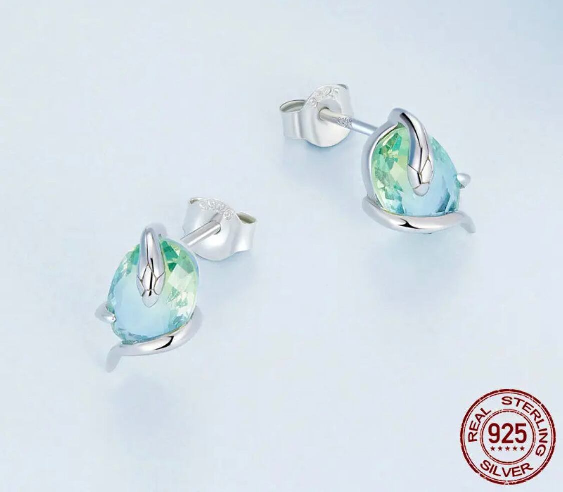 ロングスネークストーンイヤリング/925スターリングシルバー/ヴィンテージ/グリーンラインストーン/プラチナメッキ
