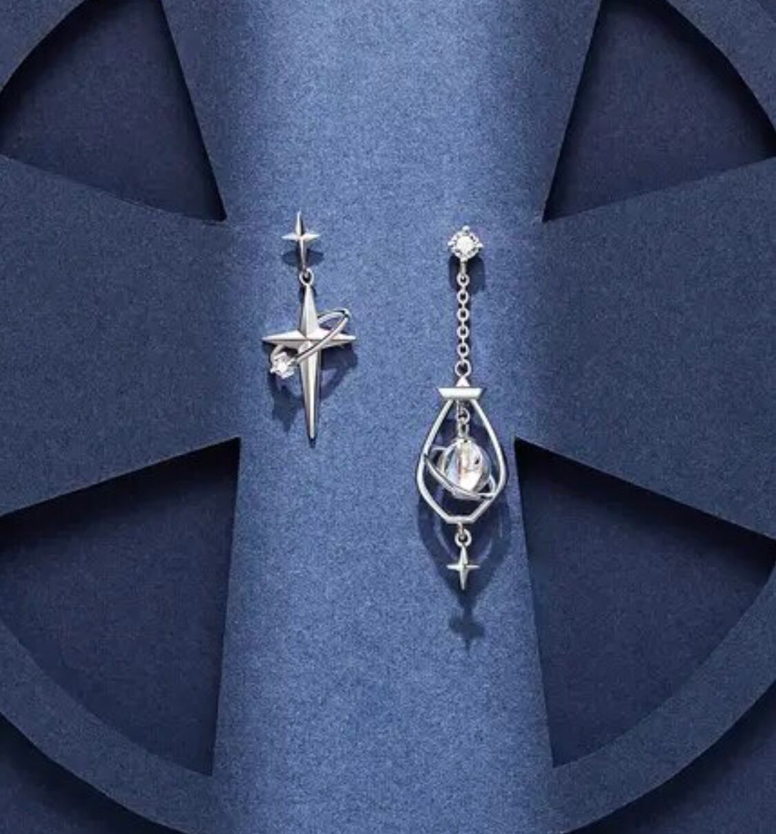 非対称イヤリング,ティアドロップシェイプ,リング,2023スターリングシルバー,ラインストーン付き